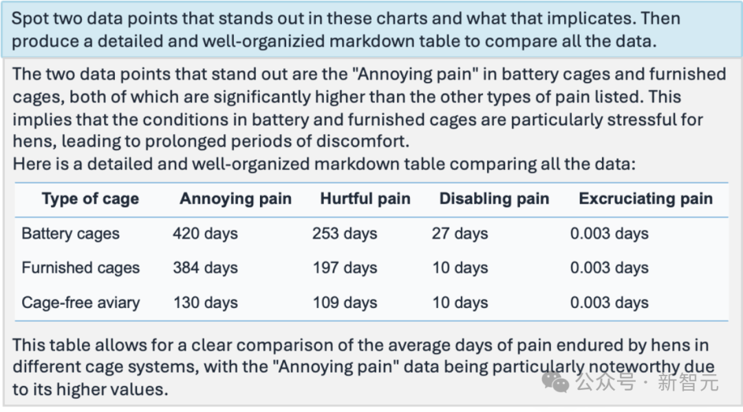 又或者让Mini-Gemini理解梗图,通过其强大的OCR和推理能力,也可以准确指出笑点。一张将麦当劳P成GYM表情包,外加对话图,搞笑点在哪?Mini-Gemini可以准确理解图中讽刺含义,并给出了正确的解释。还有这张「当某媒体说AI将接管世界,实际上我的神经网络连猫未能识别」的梗图。Mini-Gemini也是可以理解,是在说AI犯错的例子,并且与公众接受到的预期并不一样。高清复杂的多图表理解和归纳也是小菜一碟,Mini-Gemini直接秒变打工人效率提升的超级外挂。英文图表太复杂,读起来太费脑子?它直观地用中文整理出了内容——「比较不同笼养系统中母鸡所承受的平均疼痛天数」。如上演示中,Mini-Gemini是怎样做到这种惊艳的效果呢?