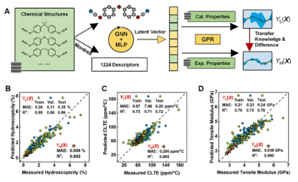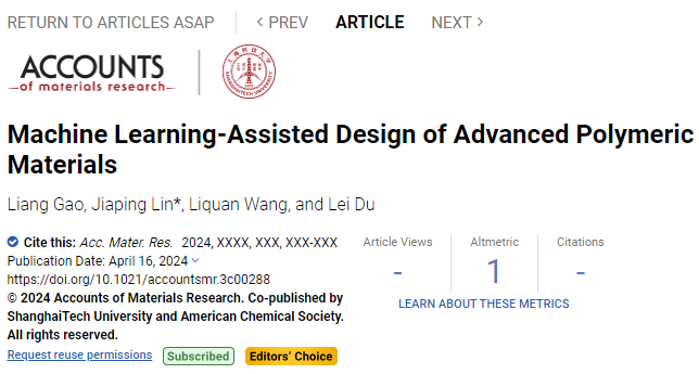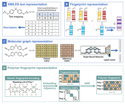 本论文探讨了机器学习(ML)和大数据如何推动高分子材料研究进入一个新的范式。通过ML辅助设计,成功开发了新的高性能高分子材料。这一目标主要通过以下步骤实现:结构表示和数据库构建、建立基于ML的性能预测模型、虚拟设计和高通量筛选。关键在于训练ML模型,这些模型基于可用的高分子数据(例如结构、组分和属性数据)来描述结构−性能关系,从而筛选出满足目标属性要求的有前景的高分子。然而,高质量高分子数据的相对稀缺以及复杂的高分子多尺度结构−性能关系为ML辅助设计方法带来了数据和建模方面的挑战。