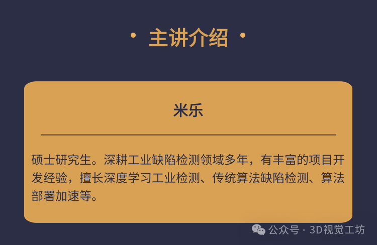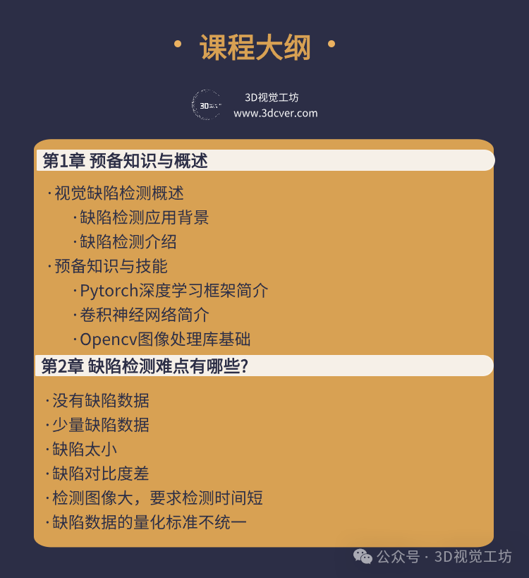 本课程重点分析讲解工业领域的难点,包括了小缺陷检测,超大图小缺陷检测,对比度不明显的缺陷检测、以及少样本的缺陷检测等工业难点,并给出相应的案例解决方案。除此之外,本课程还简单介绍pytorch 框架和opencv 基础功能,以及各种工业算法中的评价指标和CV大模型在工业场景中的简单应用,拓展丰富大家做项目的思路。