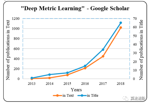 深度度量学习在音乐相似性、拥挤回归、相似区域搜索、体积图像识别、实例分割、边缘检测、全色锐化等领域有广泛应用,其高性能为文献做出了贡献。从学术出版物数量来看,如图3,深度度量学习越来越受到关注。