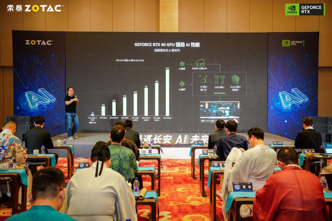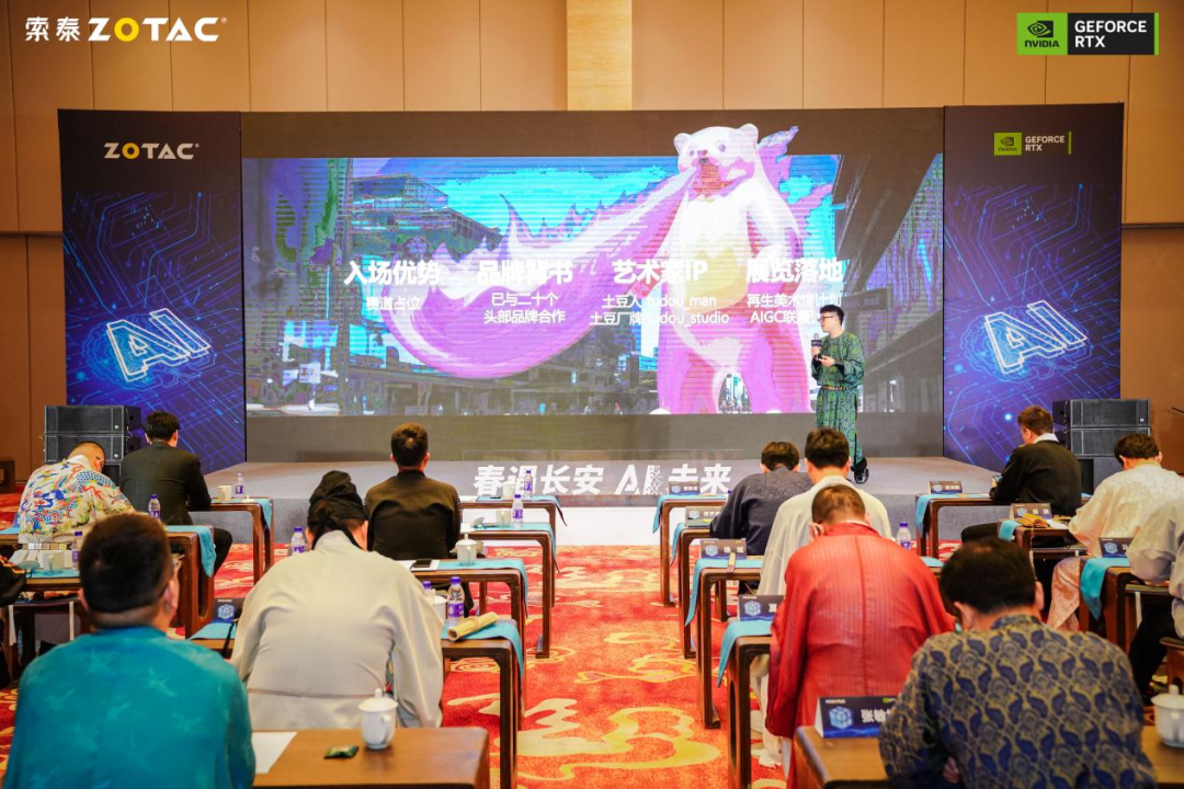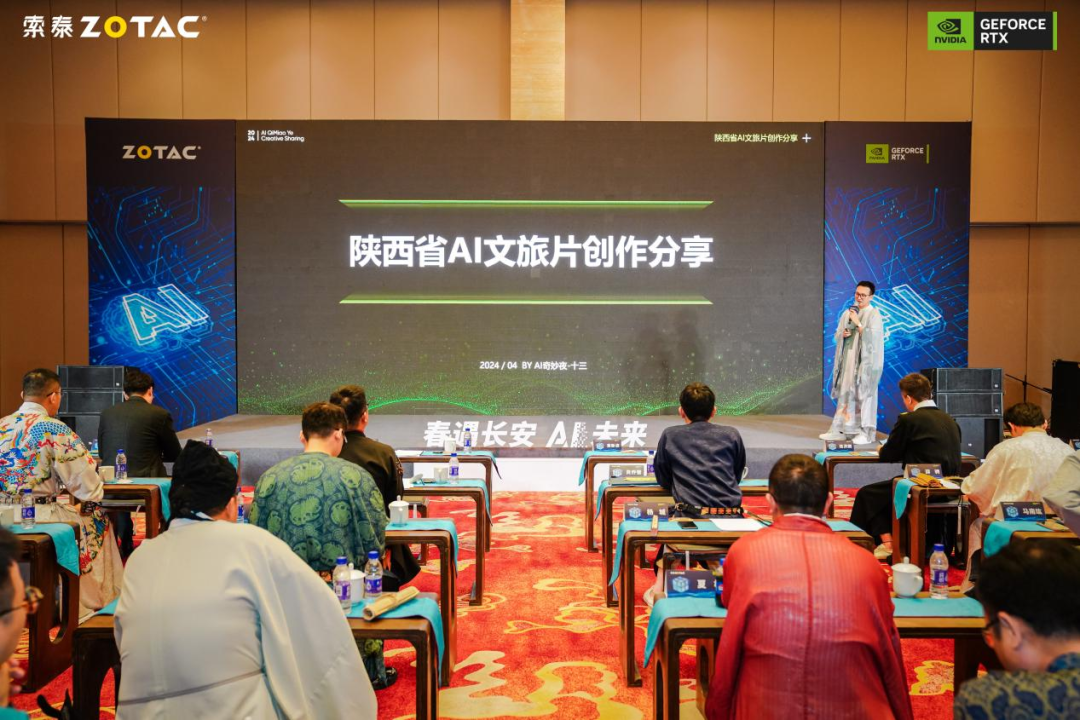 会议开始,一支索泰围本次会议精心准备的《陕西文旅AI短片》看千古长安,钟灵毓秀,泱泱华夏,盛世华章,让人惊叹的不仅仅是这千年文化古韵,更是惊叹在人工智能+时代,用AI的形式将盛大恢宏的陕西长安城历史展现出来。而这个短片,恰恰是NVIDIA×索泰 GPU技术在AI应用上的充分展现。