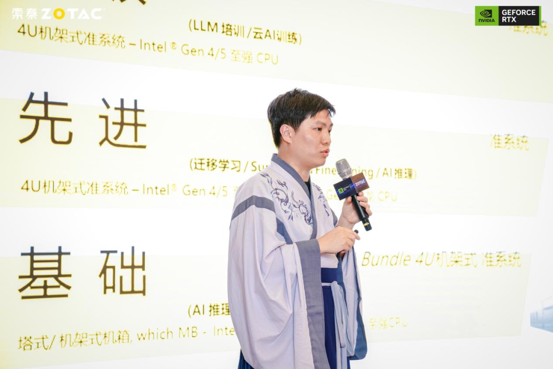 索泰中国区市场部产品经理邓伟雄先生表示,如今行业需求不断增长,从AIGC应用层到GPU服务器加速数据密集型计算整个过程中,就需要具备更强计算性能、更高能耗比以及更优秀的拓展性的装备。而索泰的产品恰恰是为了满足这些需求而生的,并且在未来,索泰还将给消费者、各行各业带来更符合时代需求的产品。