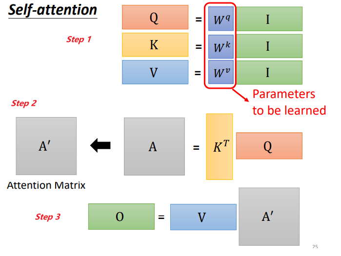 对self-attention操作过程做个总结,输入是I,输出是O: