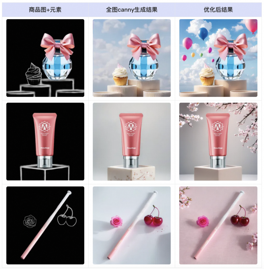 Masked Canny ControlNet流程图 2.3 效果 使用上述两个方法后,商品过度补全的现象有明显缓解,对比如下所示。