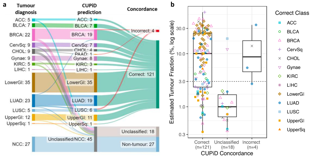 图2. CUPiD在已知肿瘤类型患者队列中的性能验证