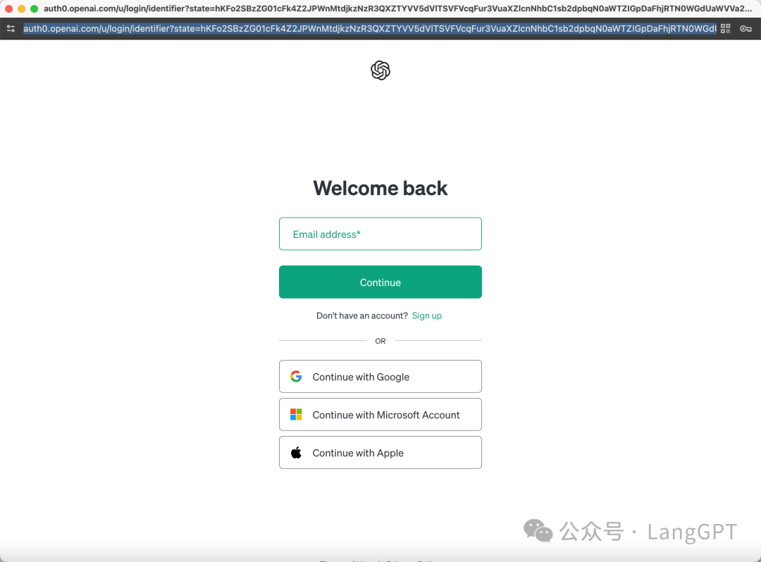 安装完成后,打开 ChatGPT 软件, 看到下面的登陆界面,进行登陆