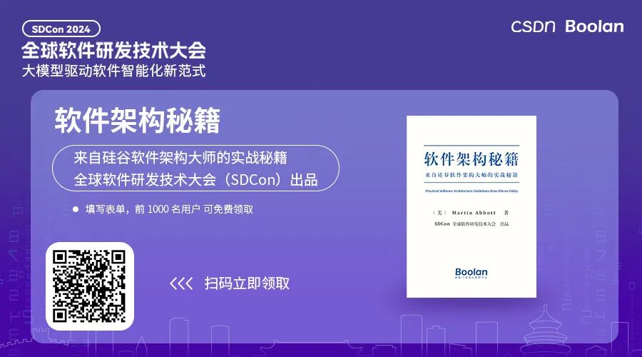 开发者正在迎接新一轮的技术浪潮变革。由 CSDN 和高端 IT 咨询和教育平台 Boolan 联合主办的 2024 年度「全球软件研发技术大会」秉承干货实料(案例)的内容原则,将于 7 月 4 日-5 日在北京正式举办。大会共设置了 12 个大会主题:大模型智能应用开发、软件开发智能化、AI 与 ML 智能运维、云原生架构……详情👉:http://sdcon.com.cn/
