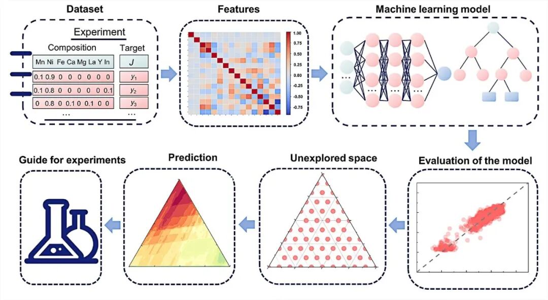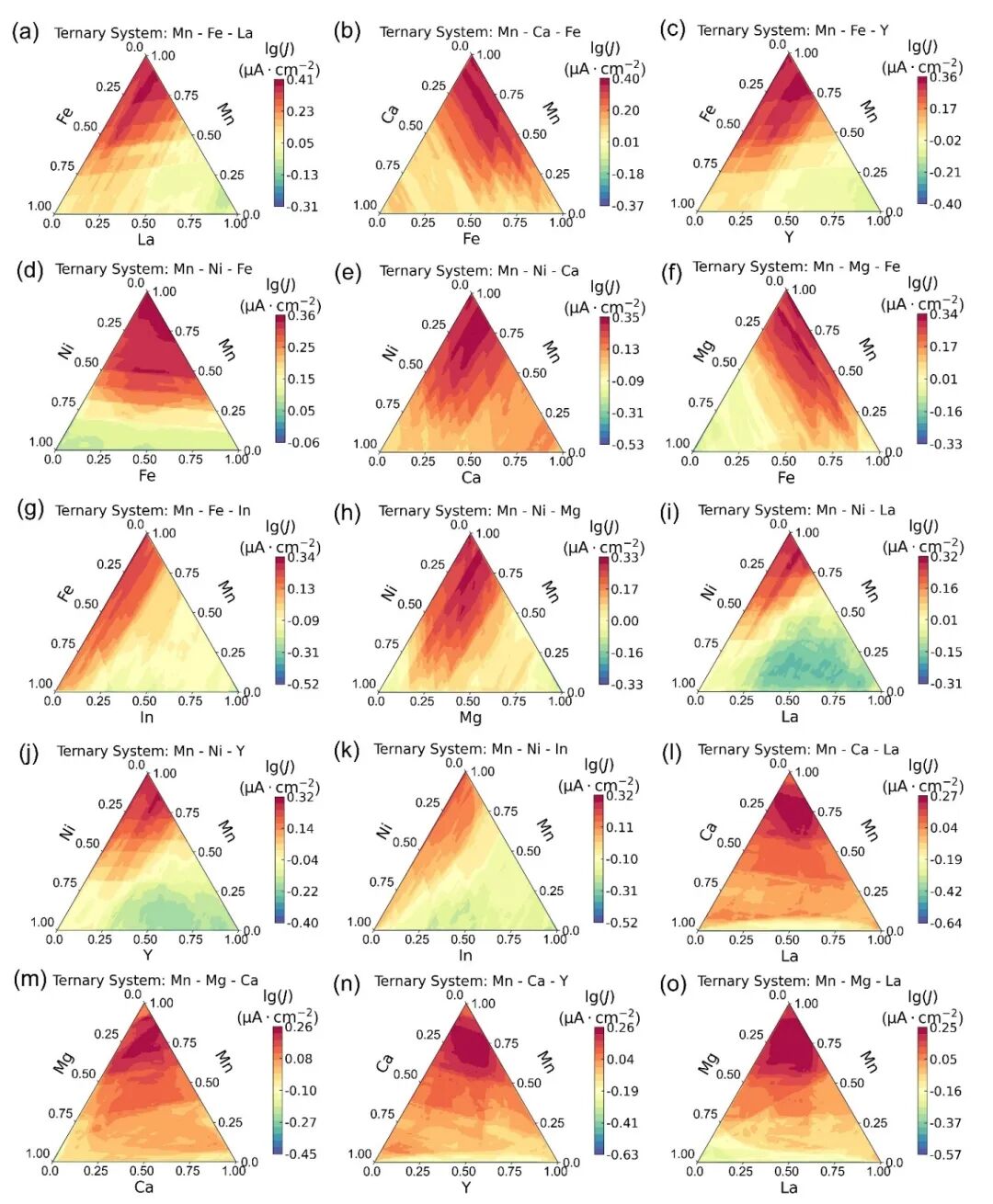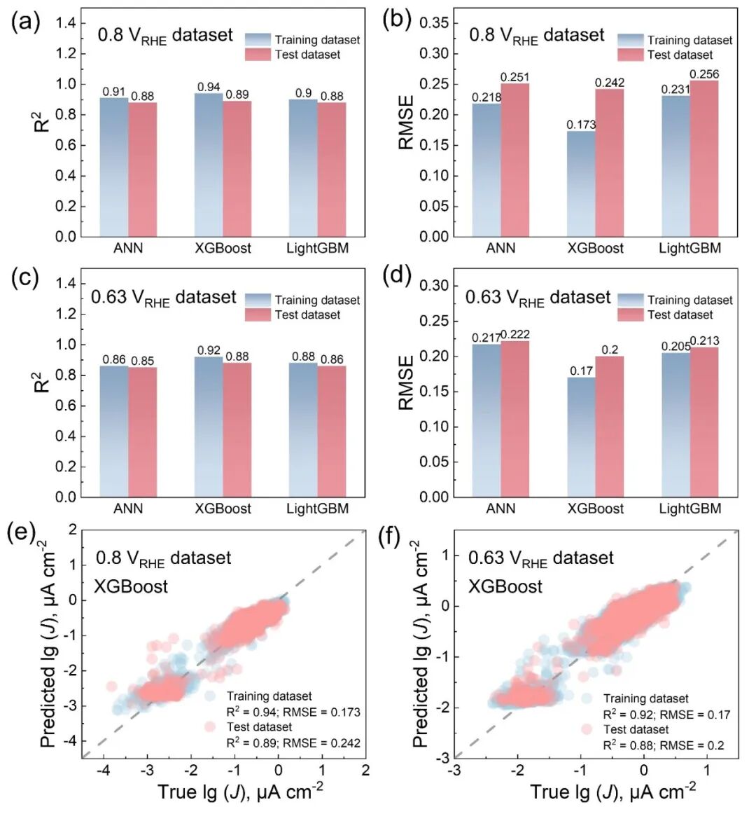 材料信息学,即通过数据挖掘方法(如机器学习)从材料数据中提取相关模式并对新材料性能进行预测,有效加速了材料的设计和理解。目前,它在催化材料领域取得了许多显著成就。因此,本文利用机器学习探索在碱性介质中促进氧还原反应的多组分金属氧化物催化剂。近日,日本东北大学李昊教授课题组在Journal of Materials Chemistry A发表题为Machine learning enabled exploration of multicomponent metal oxides for catalyzing oxygen reduction in alkaline media的利用机器学习结合高通量实验数据挖掘多组分金属氧化物催化剂的工作,研究结果推荐Mn-Ca-La、Mn-Ca-Y和Mn-Mg-Ca三元体系在氢燃料电池应用中具有较大的应用前景;Mn-Fe-X(X=Ni/La/Ca/Y)和Mn-Ni-X(X=Ca/Mg/La/Y)体系在促进过氧化氢(H2O2)的生成有重要贡献。团队设计了碱性条件下利用机器学习探索氧化还原反应多组分氧化物催化剂的工作流程(图1)。根据这一工作流程,该团队分别建立了用于预测0.8和0.63 VRHE下催化活性的机器学习模型。通过比较多种算法,XGBoost模型效果最佳(图2)。可解释性分析表明,要设计具有高电流密度的多组分氧化物催化剂,应关注较高的原子间电子值和较高的构型熵。最后,该团队确定了0.8和0.63 VRHE下,15种不同的三元金属氧化物中具有更高氧化还原催化活性的成分区域(图3-4)。尽管数据和模型可能存在某些偏差,但通过机器学习模型确定了成分和活性之间的趋势,对实验催化设计仍具有指导意义。图1:利用机器学习研究碱性条件下多组分氧化物氧化还原催化剂的工作流程图3: 0.8 VRHE下利用XGBoost模型预测的15种三元氧化物体系的电流密度值图4: 0.63 VRHE下利用XGBoost模型预测的15种三元氧化物体系的电流密度值Machine learning enabled exploration of multicomponent metal oxides for catalyzing oxygen reduction in alkaline media杂志:Journal of Materials Chemistry A【高端测试 找华算】华算科技精于高端测试服务、10余年球差电镜拍摄经验、同步辐射三代光源全球机时,300多博士/博士后等高层次人才团队亲自检测,给你高标准的数据质量保证! 球差电镜、同步辐射、原位表征、DFT计算,已助力10000多研究成果顺利在Nature、Science、JACS、Angew、EES、AM、AEM、AFM等国际顶级期刊发表,专业靠谱好评如潮!