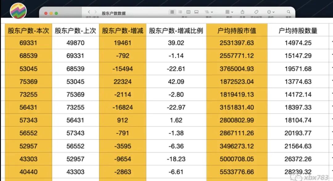包含了不同报告期的股东户数、股东户数相对上期增减和户均持股市值等字段,非常全面。