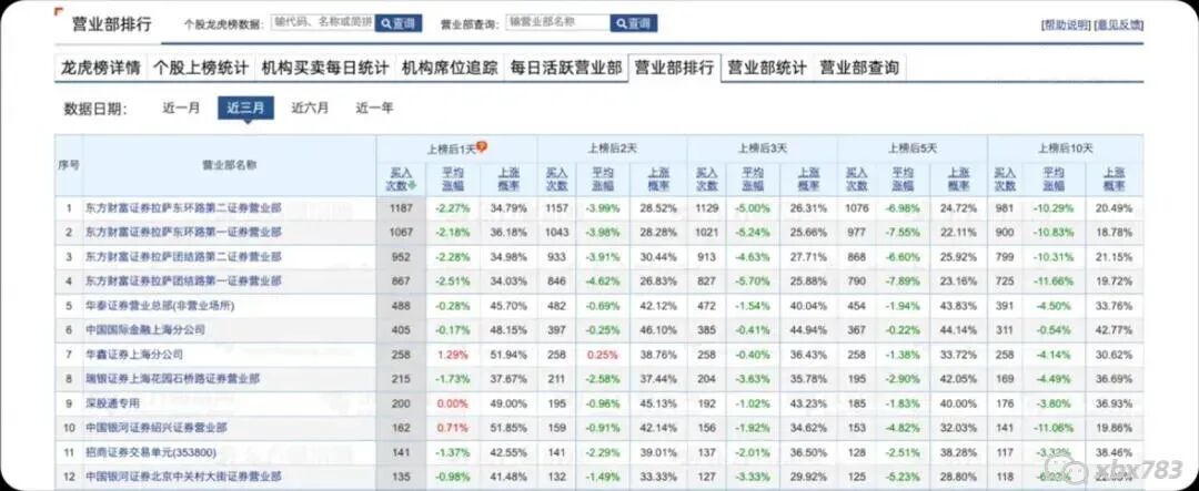 我还发现了某财经网站,它统计了该营业部在上榜后相关股票的未来表现。