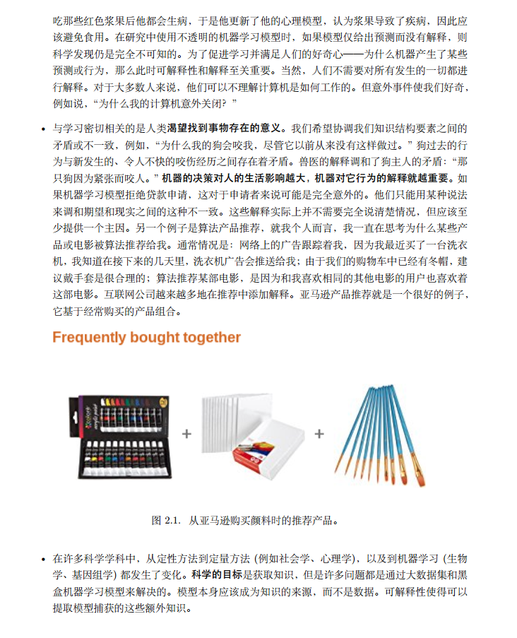 这些书本和在线课程都是免费的!⽬前解释机器学习模型的新⽅法以惊⼈的速度发表,跟上所有已发布的内容⾮常不现实。这就是为什么你不会在本书中看到最新颖、最奇特的⽅法,⽽是看到机器学习可解释性的成熟⽅法和基本概念。这些基础知识可以帮助你使机器学习模型具有可解释性。你阅读本书后,内化基础知识还使你能够更好地理解和评估 arxiv.org 上发表的有关可解释性的新论⽂。
