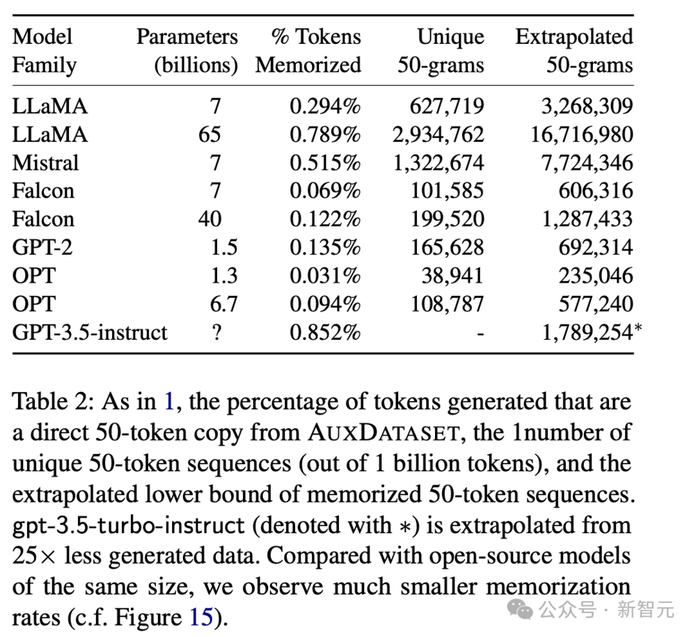 这样的判断方法会存在假阴性,因为辅助数据集不可能涵盖所有模型的训练数据,但几乎没有假阳性,因此得到的结果可以作为模型“复现”训练内容的比例下界。