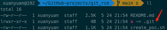 然后骚操作来了:在这个项目下,有一个名字叫a的符号链接,并且让它指向了.git目录。