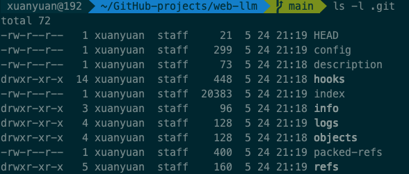 大家可以去看一下自己电脑上,不管是从GitHub克隆的项目,还是从公司的git服务器克隆的项目,你们的代码目录下,都有一个叫.git的文件夹,它的目录结构大致是下面这样的: