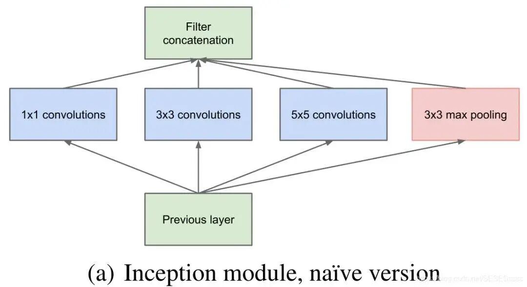 for param in vgg19.parameters(): # 输出每一层网络的尺寸 print(param.size()) batch_size = 16 input = torch.randn(batch_size, 3 , 224 , 224 ) #构建一个随机数据,模拟一个batch_size output = vgg19(input) print(output.shape) # torch.Size([16, 1000]) 2.Inception(GoogLeNet) 2.1改进(Inception v1)以往网络的不足: