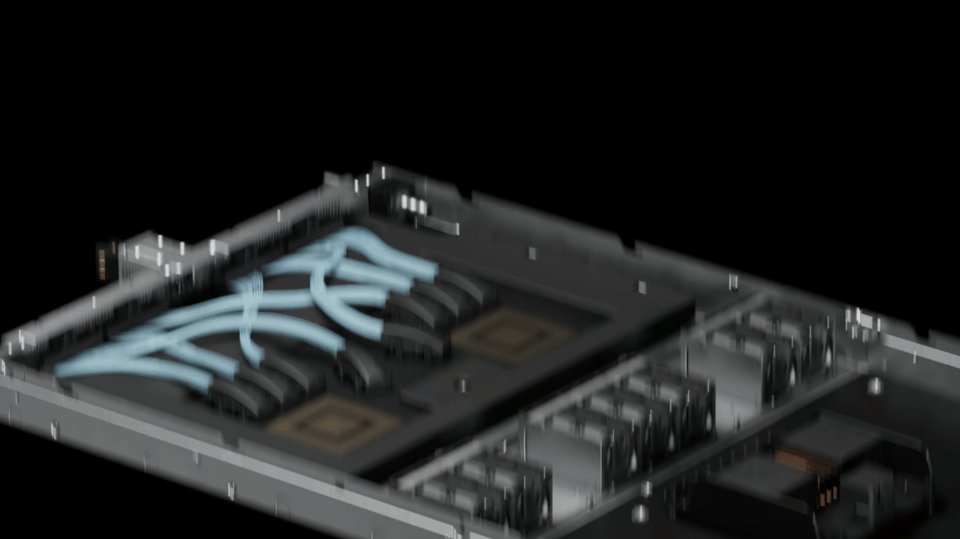 下面这个风冷的DGX Blackwell,里面有8个GPU。而对应散热器的尺寸也很惊人,达到了15kW,并且是完全的风冷。如果你喜欢部署液冷系统呢?英伟达也有新型号MGX。单个MGX同时集成72个Blackwell GPU,且有最新的第五代NVLink每秒130TB的传输速度。