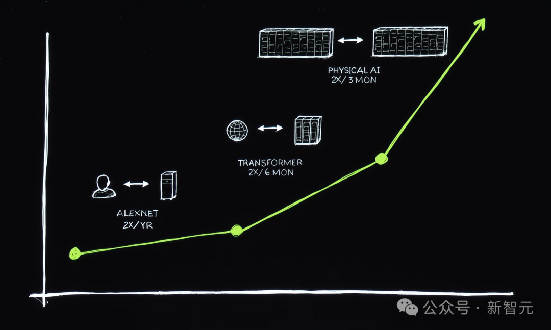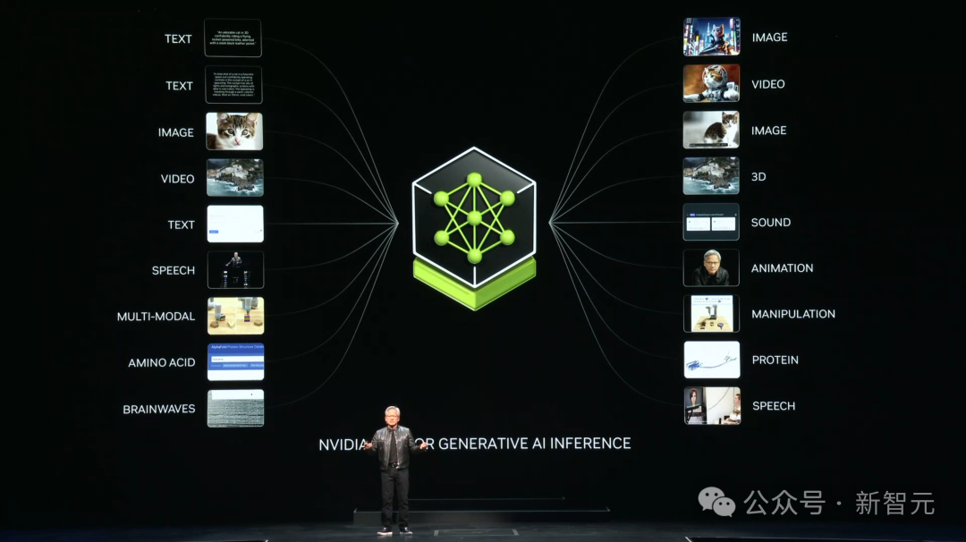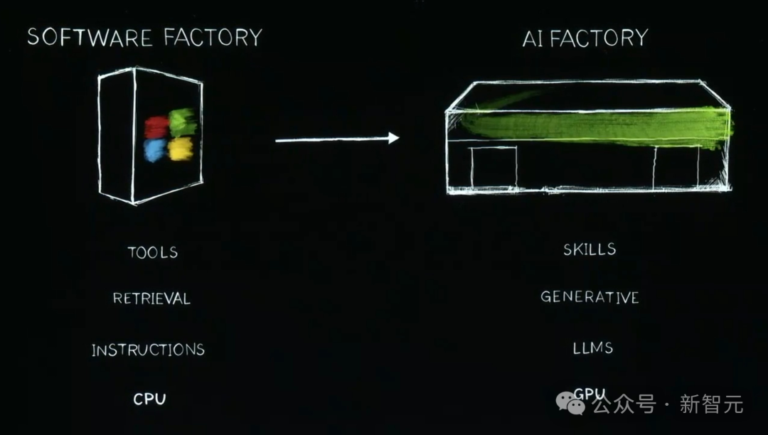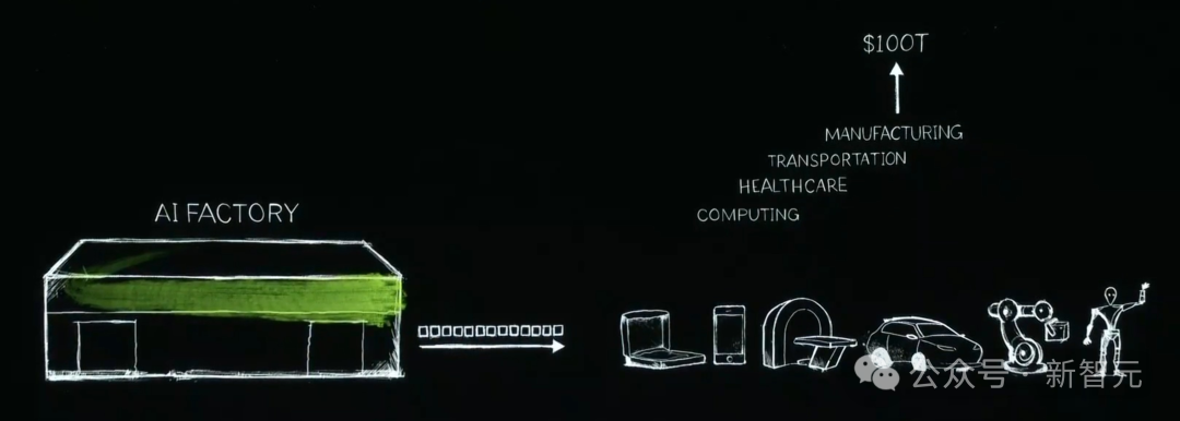 2012年,神经网络AlexNet的诞生,将英伟达第一次与AI联系起来。我们都知道,AI教父Hinton和高徒当时在2个英伟达GPU上完成AlexNet的训练。深度学习就此开启,并以超乎想像的速度,扩展几十年前发明的算法。但由于,神经网络架构不断scaling,对数据、计算量「胃口」愈加庞大,这就不得不需要英伟达重新发明一切。2012年之后,英伟达改变了Tensor Core,并发明了NvLink,还有TensorRT、Triton推理服务器等等,以及DGX超算。当时,英伟达的做法没有人理解,更没人愿意为之买单。由此,2016年,老黄亲自将英伟达首个DGX超算送给了位于旧金山的一家「小公司」OpenAI。从那之后,英伟达在不断扩展,从一台超算、到一个超大型数据中心。直到,2017年Transformer架构诞生,需要更大的数据训练LLM,以识别和学习一段时间内连续发生的模式。之后,英伟达建造了更大的超算。2022年11月,在英伟达数万个GPU上完成训练的ChatGPT横空出世,能够像人类一样交互。这是世界第一次看到了生成式AI。它会一次输出一个token,可以是图像、语音、文字、视频,甚至是天气token,全部都是关于生成。老黄表示,「我们可以学习的一切,现在都可以生成。我们现在已经进入了一个全新的生成式AI时代」。当初,那个作为超算出现的计算机,已经变成了数据中心。它可以输出token,摇身一变成为了「AI工厂」。而这个「AI工厂」,正在创造和生产巨大价值的东西。19世纪90年代末,尼古拉·特斯拉发明了AC Generator,而现在,英伟达正创造可以输出token的AI Generator。英伟达给世界带来的是,加速计算正引领新一轮产业革命。人类首次实现了,仅靠3万亿美元的IT产业,创造出能够直接服务于100万亿美元产业的一切东西。传统的软件工厂,到如今AI工厂的转变,实现了CPU到GPU,检索到生成,指令到大模型,工具到技能的升级。从Blackwell GPU到超级「AI工厂」
