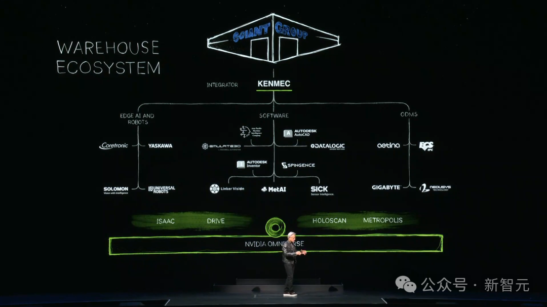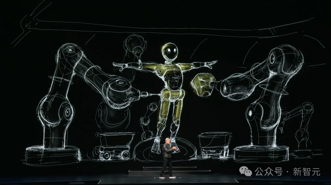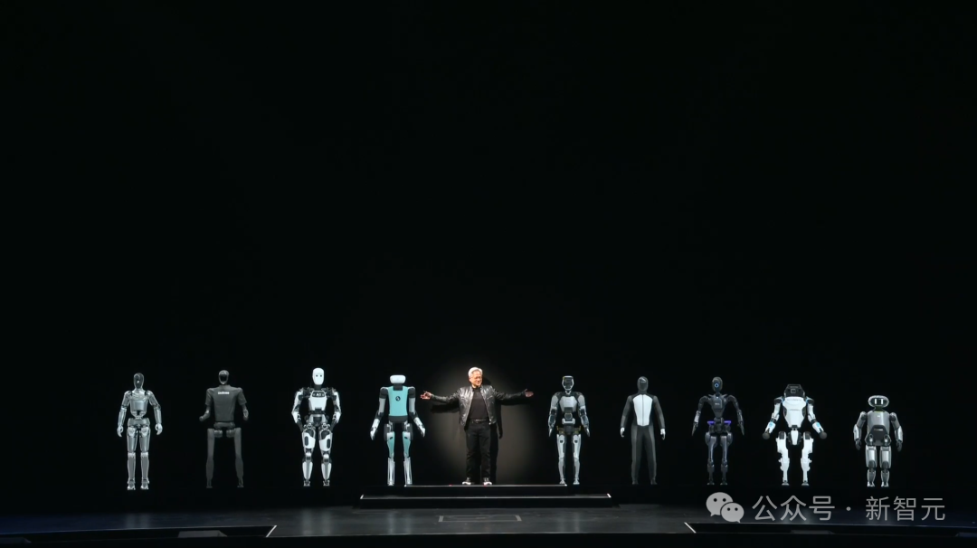 除了芯片和超算服务器,老黄还发布了一个所有人都没有想到的项目——数字孪生地球「Earth-2」。这也许是世界范围内最有雄心的项目(甚至没有之一)。而且根据老黄的口吻推测,Earth-2已经推进了数年,今年取得的重大突破才让他觉得,是时候亮出来了。为什么要为建造整个地球的数字孪生?是要像小扎的元宇宙那样,把社交和互动都搬到线上平台吗?他希望在Earth-2的模拟,可以预测整个星球的未来,从而帮我们更好地应对气候变化和各种极端天气,比如可以预测台风的登陆点。Earth-2结合了生成式AI模型CorrDiff,基于WRF数值模拟进行训练,能以12倍更高的解析度生成天气模型,从25公里范围提高到2公里。不仅解析度更高,而且相比物理模拟的运行速度提高了1000倍,能源效率提高了3000倍,因此可以在服务器上持续运行、实时预测。而且,Earth-2的下一步还要将预测精度从2公里提升到数十米,同时考虑城市内的基础设施,甚至可以预测到街道上什么时候会刮来强风。而且,英伟达想数字孪生的,不止是地球,还有整个物理世界。对于这个狂飙突进的AI时代,老黄大胆预测了下一波浪潮——物理AI,或者说是具身AI。它们不仅需要有超高的认知能力,可以理解人类、理解物理世界,还要有极致的行动力,完成各种现实任务。想象一下这个赛博朋克的未来:一群机器人在一起,像人类一样交流、协作,在工厂里创造出更多的机器人。而且,不仅仅是机器人。一切能移动的物体都会是自主的!在多模态AI的驱动下,它们可以学习、感知世界,理解人类指令,并进化出计划、导航以及动作技能,完成各种复杂任务。那要怎样训练这些机器人呢?如果让他们在现实世界横冲直撞,代价要比训练LLM大得多。正像LLM可以通过RLHF进行价值观对齐一样,机器人也可以在遵循物理规律的数字孪生世界中不断试错、学习,模仿人类行为,最终达到通用智能。Nvidia的Omniverse可以作为构建数字孪生的平台,集成Gen AI模型、物理模拟以及动态实时的渲染技术,成为「机器人健身房」。志在做全栈的英伟达也不仅仅满足于操作系统。他们还会提供用于训练模型的超算,以及用于运行模型的Jetson Thor和Orin。为了适应不同应用场景下的机器人系统,英伟达的Omniverse将逐步扩展为Warehouse生态系统。这个生态将无所不包,从搭配应用程序的SDK和API,到运行边缘AI计算的接口,再到最底层的可定制芯片。在全栈产品方面,英伟达就是想要做自己的「全家桶」,让别人无路可走。为了让这个AI 机器人时代看起来更真实,演示的最后,9个和老黄有同样身高的机器人一同登场。正如老黄所说的,「这不是未来,这一切都正在发生」。https://www.nvidia.cn/events/computex/?ncid=so-wech-642406