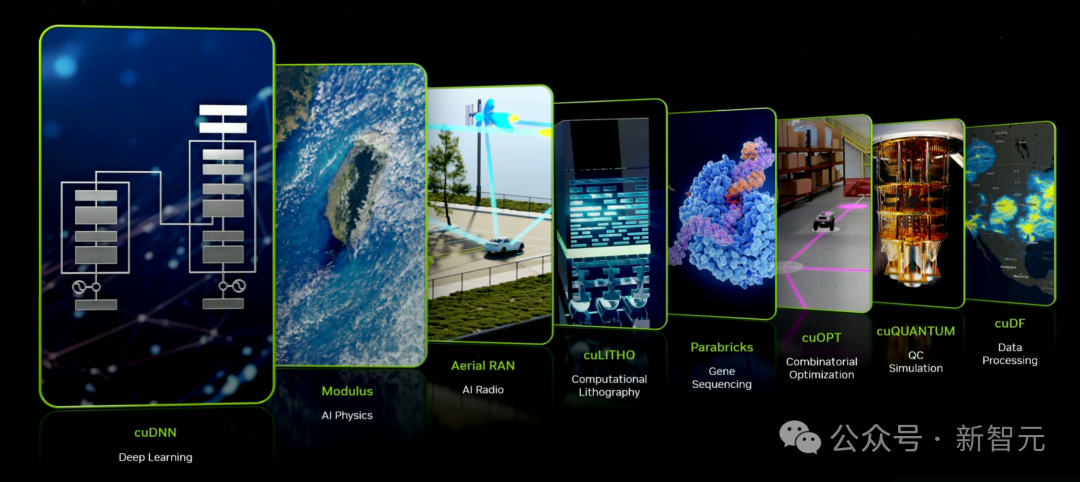 当我们运行一个应用程序,不希望是一个运行100秒,甚至是100个小时的APP。因此,英伟达首创了异构计算,让CPU和GPU并行运行,将过去的100个时间单位,加速到仅需要1个时间单位。可见,它已经实现了100倍速率提升,而功耗仅增加的3倍,成本仅为原来的1.5倍。英伟达同时为价值十亿美元的数据中心,配备了5亿美元的GPU,让其变成了「AI工厂」。有了加速计算,世界上许多公司可以节省数亿美元在云端处理数据。这也印证了老黄的「数学公式」,买得越多,省得越多。除了GPU,英伟达还做了业界难以企及的事,那就是重写软件,以加速硬件的运行。如下图所示,从深度学习cuDNN、物理Modulus、通信Aerial RAN、基因序列Parabricks,到QC模拟cuQUANTUM、数据处理cuDF等领域,都有专用的CUDA软件。也就是说,没有CUDA,就等同于计算机图形处理没有OpenGL,数据处理没有SQL。而现在,采用CUDA的生态遍布世界各地。就在上周,谷歌宣布将cuDF加入谷歌云中,并加速世界上受欢迎的数据科学库Pandas。而现在,只需要点击一下,就可以在CoLab中使用Pandas。就看这数据处理速度,简直快到令人难以置信。老黄表示,要推行一个全新的平台是「蛋和鸡」的困境,开发者和用户,缺一不可。但是经过20年的发展,CUDA已经打破了这个困境,通过全球500万开发者和无数领域的用户实现了良性循环。有越多人安装CUDA,运行的计算量越大,他们就越能据此改进性能,迭代出更高效、更节能的CUDA。
