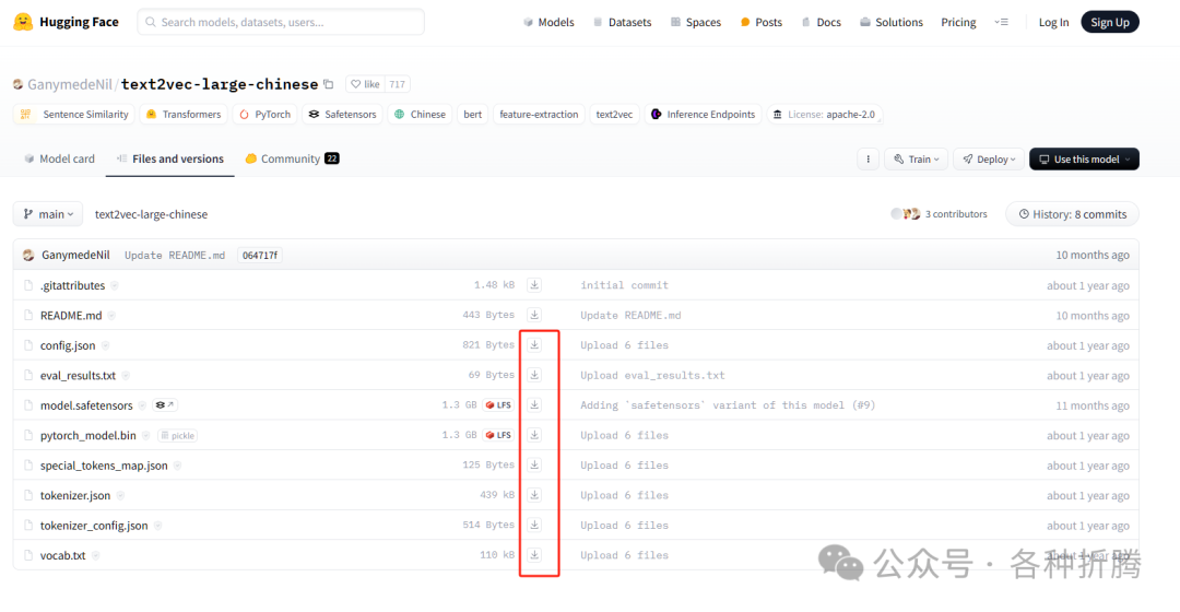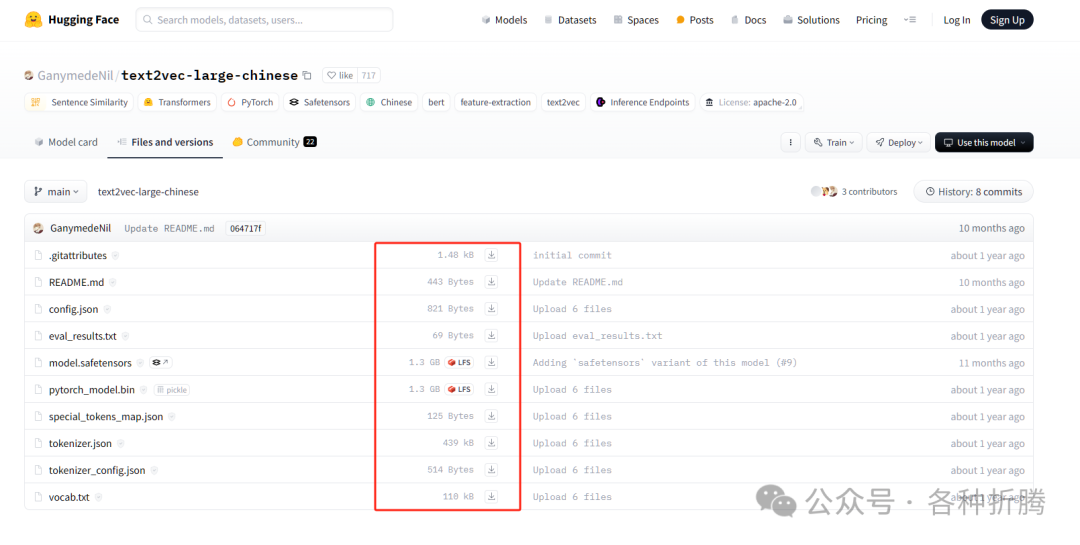 当然手动下载的话,记得要在 models 目录下,再建一个 text2vec-large-chinese 目录,用于上传我们下载的模型文件