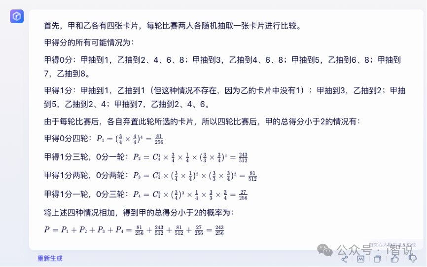 用AI产品来算,原本以为算概率这种事情,应该是计算机最擅长的了。结果,国内的8款大模型全部翻车,只有ChatGPT答对!