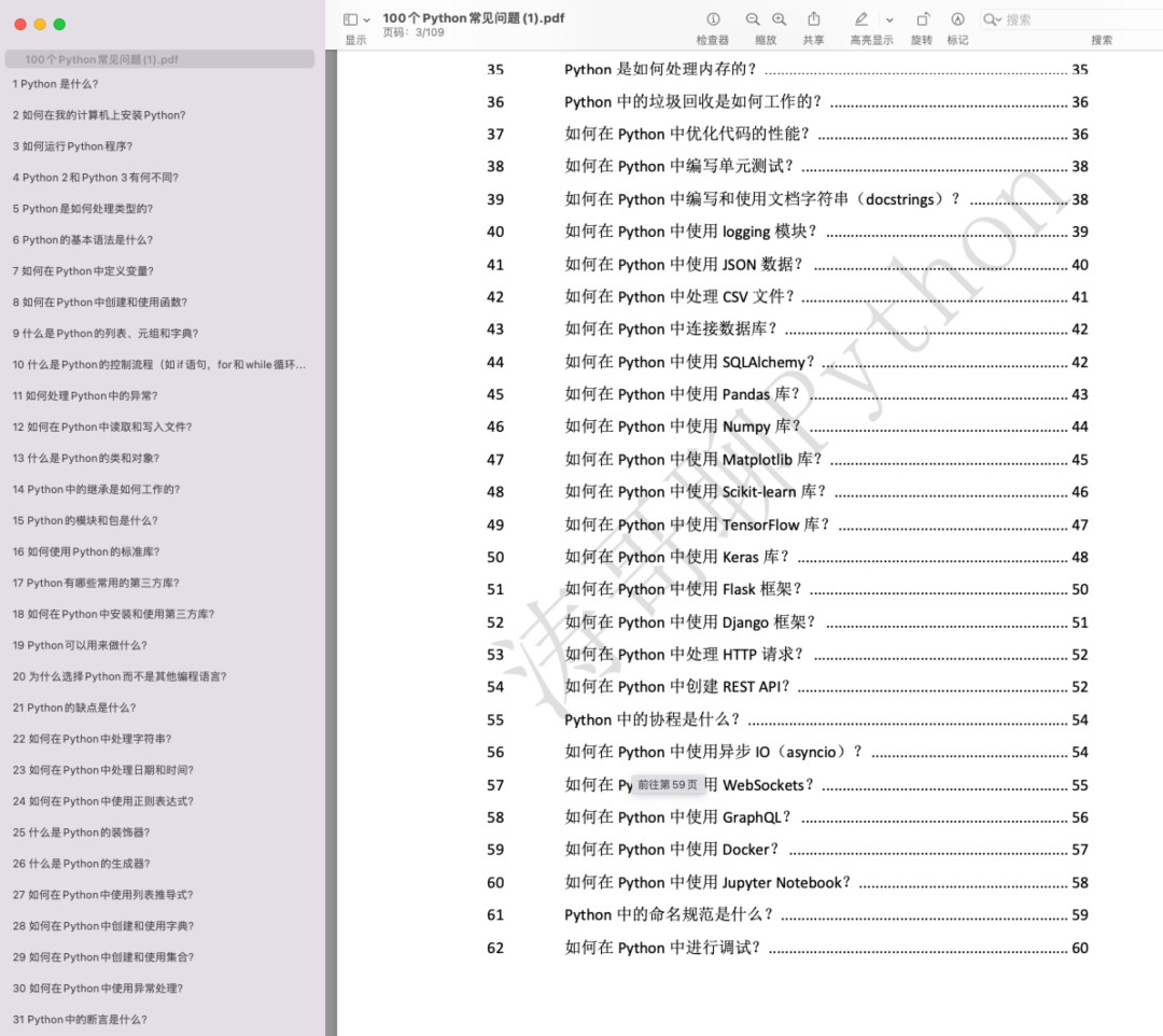 内容包括从Python常见的入门基础,到Python进阶的常见问题,