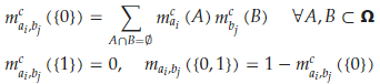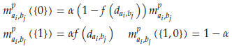 。然后,可以定义关于两个检测的可能关联的三个命题aj 和bj分别如下:{0,1} 表示无法判断aj和bj是否为同一个对象,即未知假设。关联置信度可以根据位置和类别相似度来确定。位置相似性的证据根据马哈拉诺比斯距离可定义为:其中
