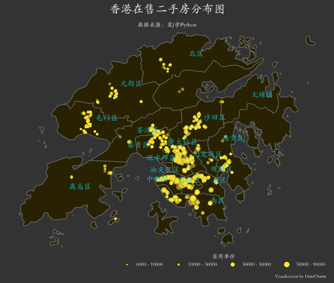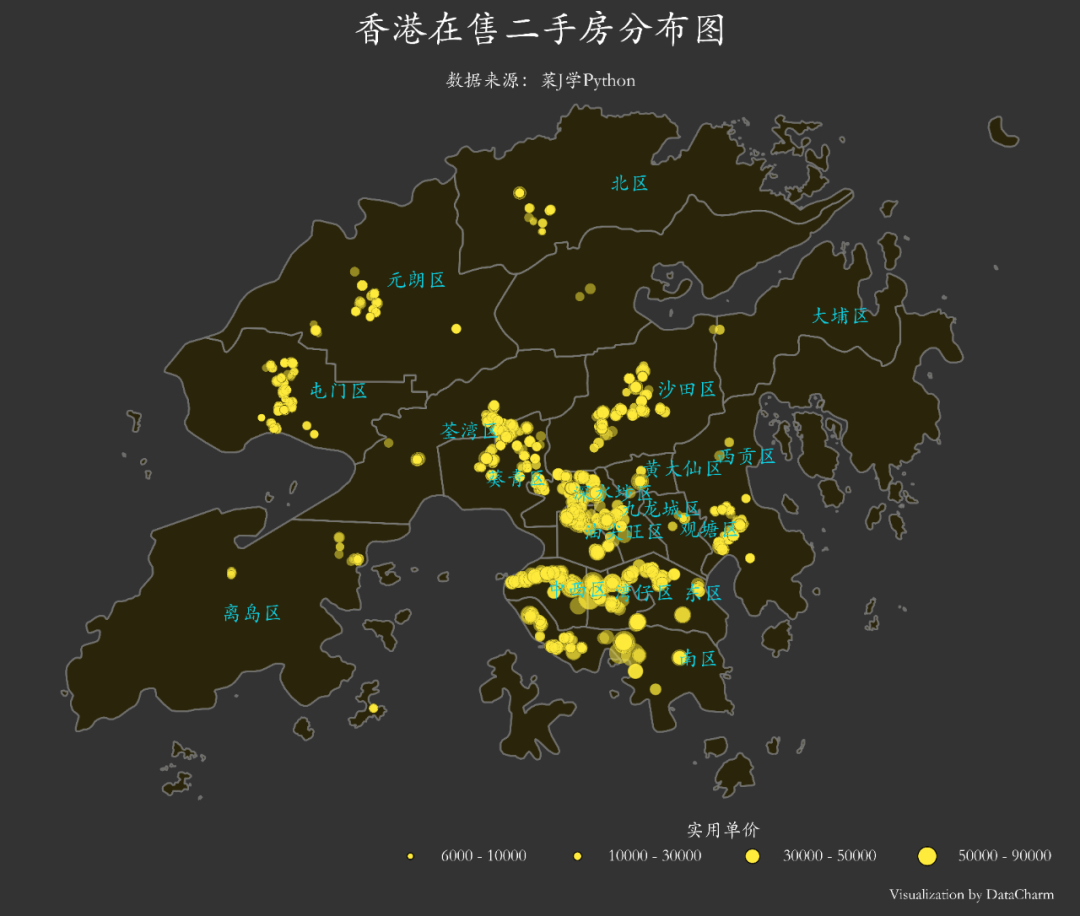 ax.text(.5,1.05,"香港在售二手房分布图",transform = ax.transAxes,color="white",weight='bold',size=20,