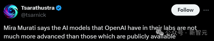 「Mira Murati表示OpenAI实验室的人工智能模型并不比公开的模型先进多少。」