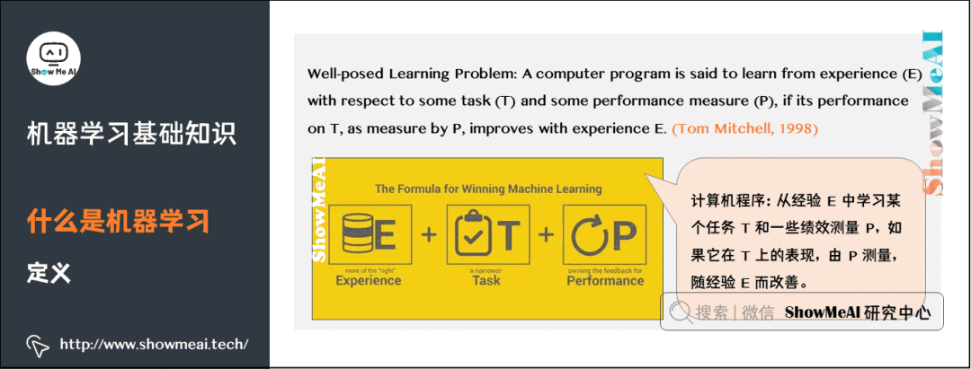 人工智能(Artificial intelligence)是研究、开发用于模拟、延伸和扩展人的智能的理论、方法、技术及应用系统的一门新的技术科学。它是一个笼统而宽泛的概念,人工智能的最终目标是使计算机能够模拟人的思维方式和行为。大概在上世纪50年代,人工智能开始兴起,但是受限于数据和硬件设备等限制,当时发展缓慢。机器学习(Machine learning)是人工智能的子集,是实现人工智能的一种途径,但并不是唯一的途径。它是一门专门研究计算机怎样模拟或实现人类的学习行为,以获取新的知识或技能,重新组织已有的知识结构使之不断改善自身的性能的学科。大概在上世纪80年代开始蓬勃发展,诞生了一大批数学统计相关的机器学习模型。深度学习(Deep learning)是机器学习的子集,灵感来自人脑,由人工神经网络(ANN)组成,它模仿人脑中存在的相似结构。在深度学习中,学习是通过相互关联的「神经元」的一个深层的、多层的「网络」来进行的。「深度」一词通常指的是神经网络中隐藏层的数量。大概在2012年以后爆炸式增长,广泛应用在很多的场景中。机器学习研究的是计算机怎样模拟人类的学习行为,以获取新的知识或技能,并重新组织已有的知识结构,使之不断改善自身。从实践的意义上来说,机器学习是在大数据的支撑下,通过各种算法让机器对数据进行深层次的统计分析以进行「自学」,使得人工智能系统获得了归纳推理和决策能力。通过经典的 垃圾邮件过滤 应用,我们再来理解下机器学习的原理,以及定义中的T、E、P分别指代什么:2)机器学习三要素