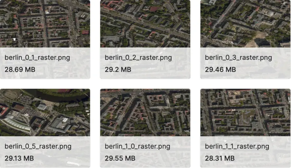 这些图像是从美国地质勘探局国家地图城市区域图像集中针对全国各个城市地区的大图像中手动提取的。此公共领域图像的像素分辨率为 1 英尺。