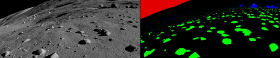 由于月球图像的稀缺性和缺乏注释,通常很难对其进行任何类型的机器学习实验。该数据集的目标是为公众提供人造而逼真的月球景观样本,可用于训练岩石检测算法。这些经过训练的算法可以在实际的月球图片或其他岩石地形图片上进行测试。该数据集目前包含 9,766 个岩石月球景观的真实渲染图,以及它们的分段等价物(3 类是天空、较小的岩石和较大的岩石)。还提供了所有较大岩石和经过处理、清理后的地面实况图像的边界框表。