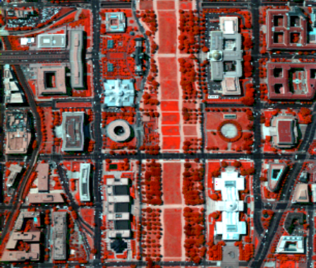 Washington DC数据集是由Hydice传感器获取的一幅华盛顿购物中心上空的航空高光谱影像,数据包含了从 0.4 -2.4 µm可见光和近红外波段范围的共191个波段,数据大小为1280×307。地物类别包括街道,草地,水,碎石小路,树木,阴影和屋顶。