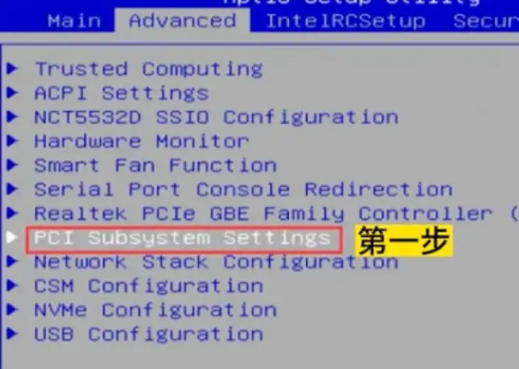 开机按 del 键,选择 Advanced 选项,打开 above 4g,才能正常开机、识别显卡。