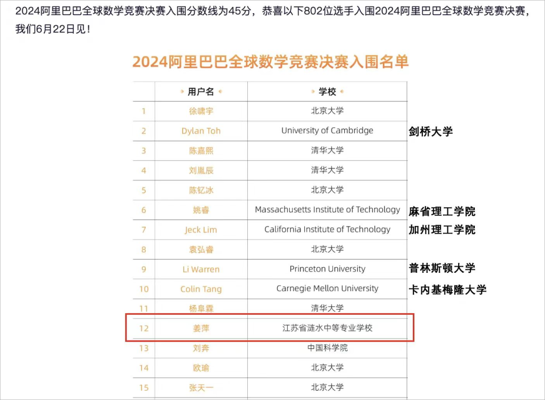 今年是阿里全球数学竞赛的第六届,而姜萍,也是有史以来,第一个冲进决赛的中专生。