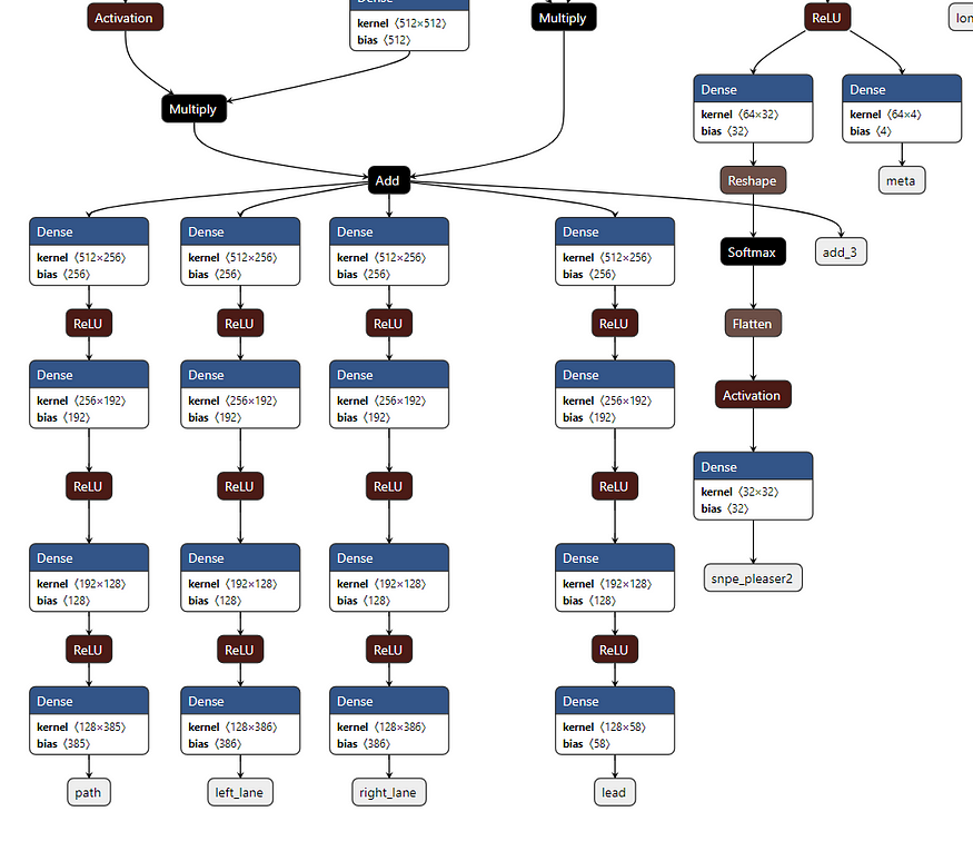 这里要注意的另一件事是,当看不到车道线时,或者当模型对其预测不太有信心时,车道线也会消失。这个“信心”分数基本上也是由模型预测的,只是“标准偏差”。这些标准偏差是针对每条路径、左车道和右车道以及许多其他输出(包括姿势、领先输出等)预测的。