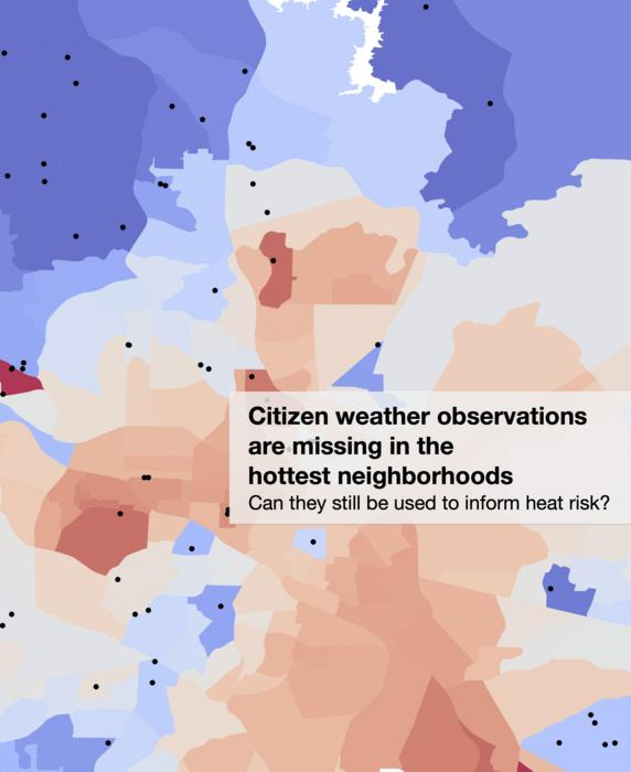 热岛效应(Urban heat island effect)指的是由于某一地区因建筑物较多、植被较少且人口密度较高,导致该区域气温高于周围地区的现象。美国城市中的贫困地区就通常比富裕地区温度更高。此前,美国很多地区的天气信息大多来源于公众科学家建立的个人气象站,这些数据由气象站获取并在名为“地下气象”(Weather Underground)的网站上分享。然而,近日一项发表于《环境科学与技术快报》(Environmental Science and Technology Letters)的研究指出,用于测量这些城市地区温度的公众科学工具很可能低估了热岛效应。