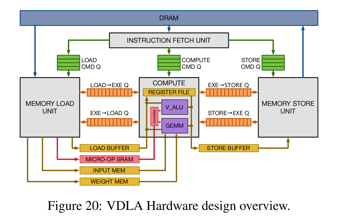 延迟隐藏是指将内存操作与计算重叠以最大限度地利用内存和计算资源的过程。它需要不同的策略,具体取决于目标硬件后端。在 CPU 上,内存延迟隐藏是通过同步多线程 或 硬件预取 来隐式实现的。GPU 依赖于许多线程的快速上下文切换。相比之下,诸如 TPU 之类的专用 DL 加速器通常倾向于使用解耦访问执行 (DAE) 架构记性更加精简的控制,并将细粒度同步的问题转移给软件。