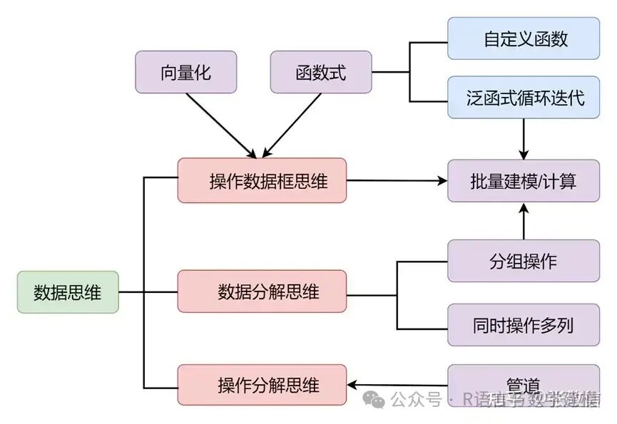 面向R语言零基础、少基础想要快速成长为R编程高手或为此奠定基础的人员,可看作是张敬信 在狗熊会讲座“tidyverse 优雅编程:从向量化、泛函式到数据思维(加量版) ”的展开版,及其 R 新书《R语言编程:基于tidyverse 》核心内容的作者讲解版,将围绕如下整洁优雅的数据编程思维展开: