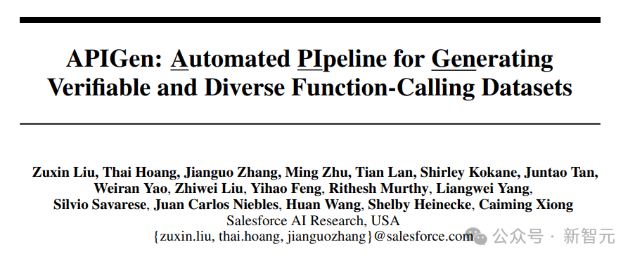 简言之,这得益于在数据处理上的创新方法。其背后团队开发了APIGen,这是一套自动化流程,可以生成高质量、多样化且可验证的数据集,用于训练AI模型在函数调用任务中的表现。
