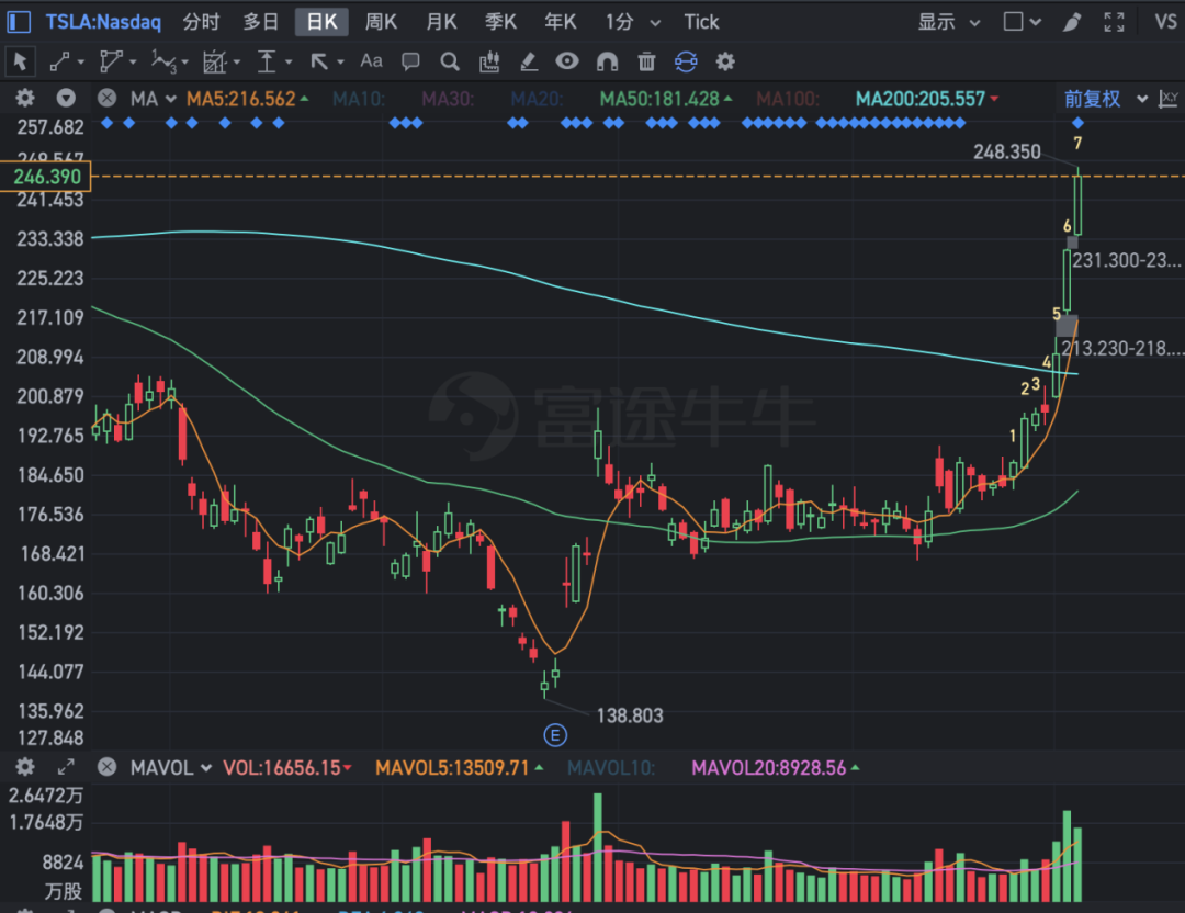 特斯拉股价上个交易日收涨6.54%,报246.39元,市值7857.86亿美元,成交额为403.51亿美元。