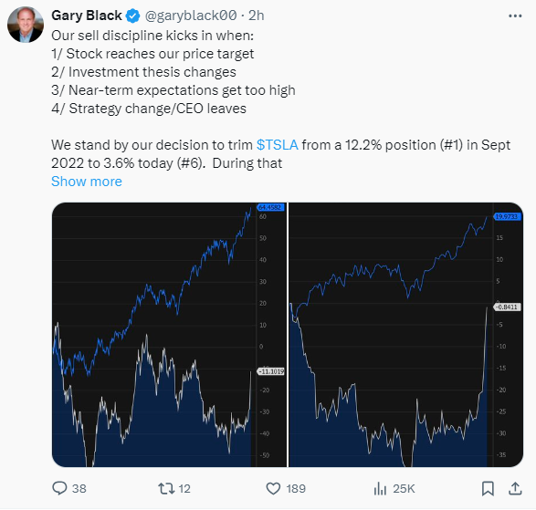 我们坚持自己的决定,将 $TSLA 的仓位从 2022 年 9 月的 12.2% (#1) 削减至目前的 3.6% (#6)。在此期间,$TSLA -11%,而 NDX +64%,$NVDA 取代$TSLA 成为我们的第二大头寸,这对我们的业绩起到了加成作用。我们对 TSLA 第二季度交付量的预测显然过于保守(实际同比-5%,预期同比-10%),但最终客户希望我们遵循我们的研究和估值纪律。