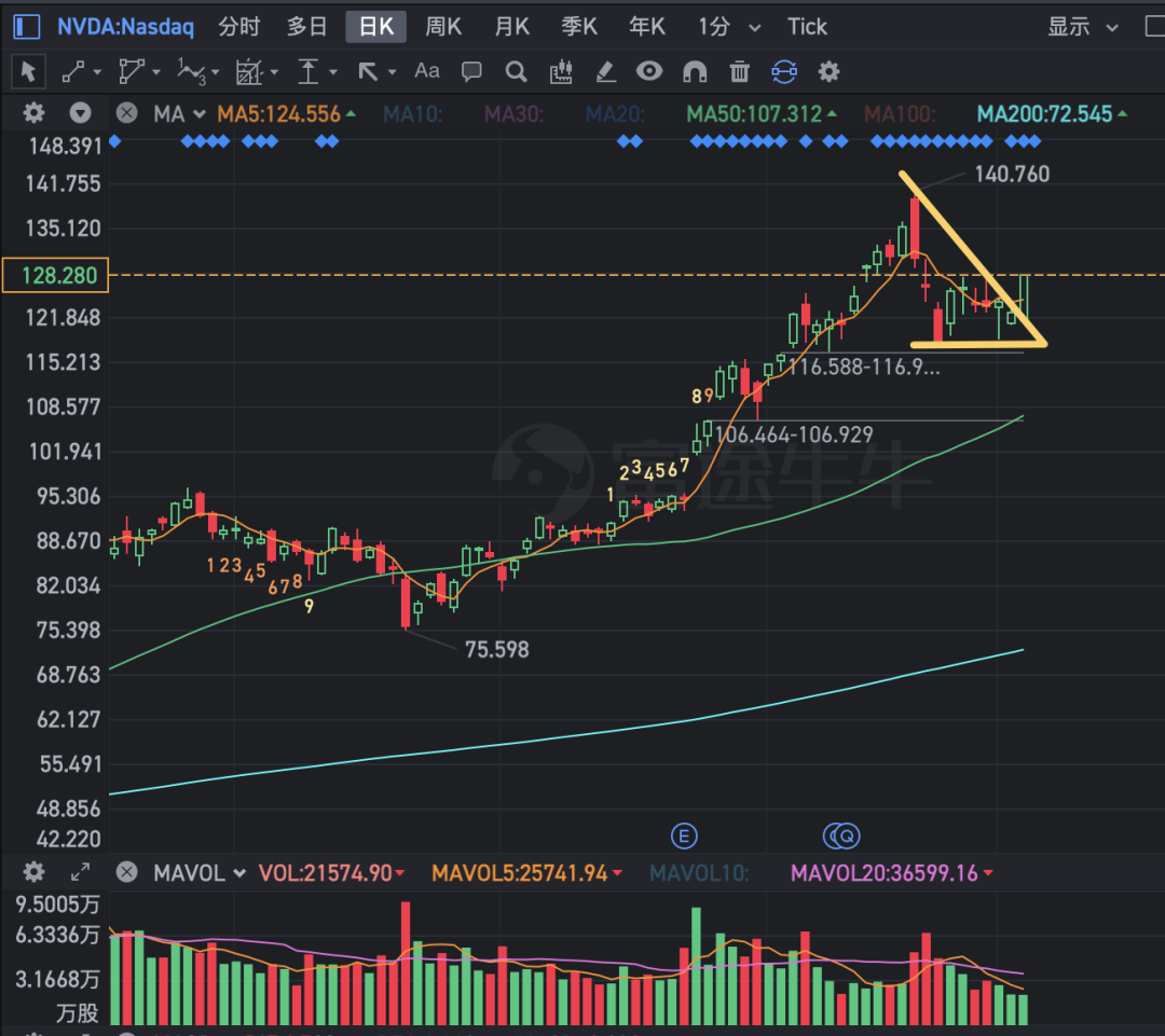 英伟达股价上个交易日收涨4.57%,报128.28元,市值为31556.8亿美元,成交额为270.19亿美元。