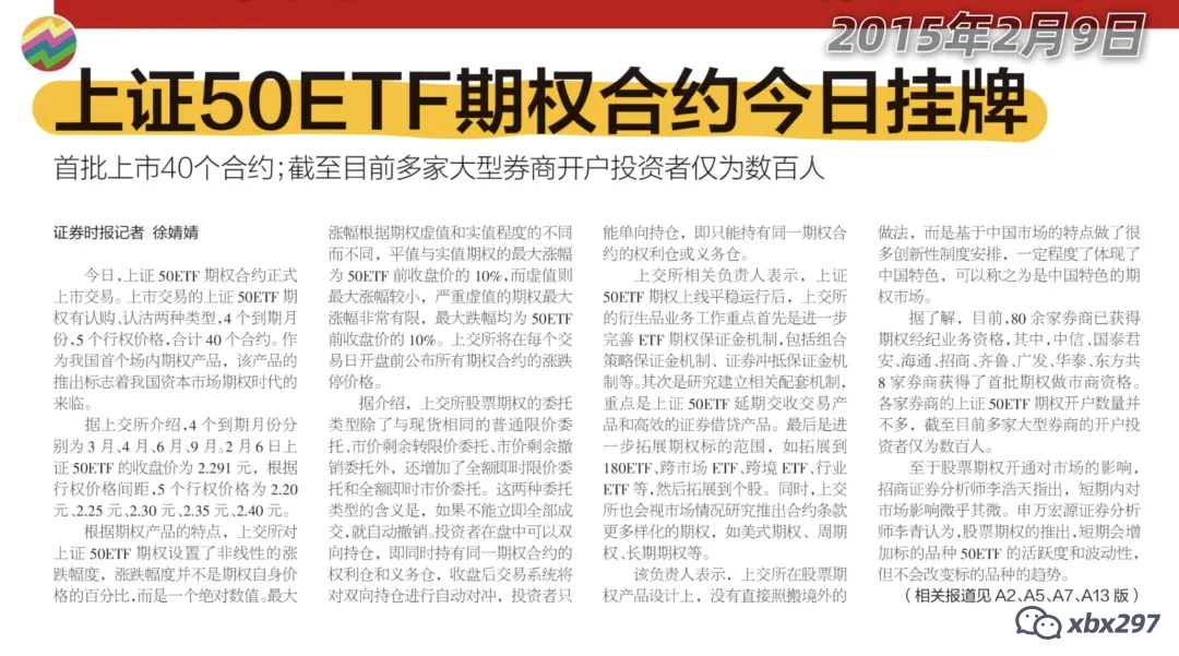 A股期权交易起步较晚,直至2015年2月9日,上证50ETF期权于上交所上市,才实现了场内期权零的突破。