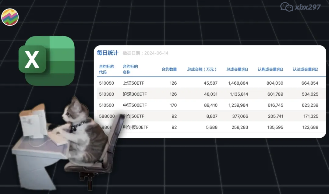 相应的数据已经帮大家准备好了,包含了上证50ETF期权上市后每天的收盘价、持仓量、认购/认沽成交量等,非常完备。