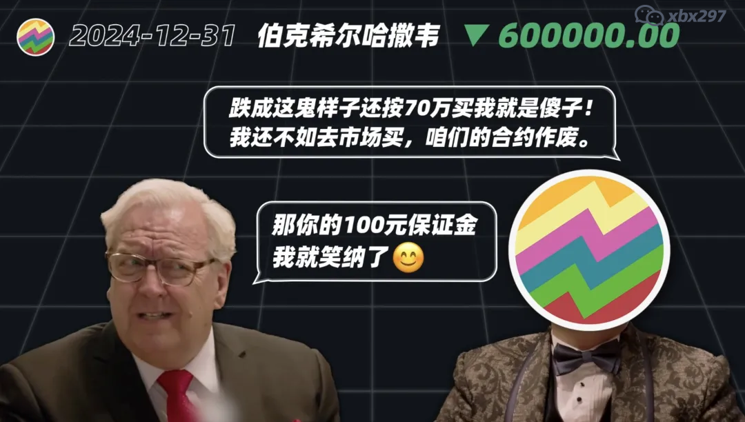 2024年底,如股价低于70万美元,我们选择不执行约定,转而在市场购买(说不定还能买到200美元/股)。