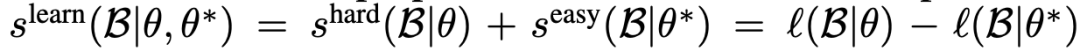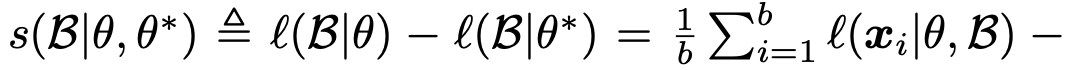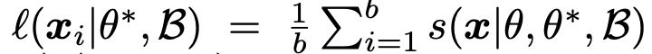 由于batch上的对比损失可以分解为每个样本的条件损失之和,因此可学习性评分可被分解为单个样本可学习性评分𝑠(𝒙|𝜃,𝜃∗,ℬ)之和,写作: