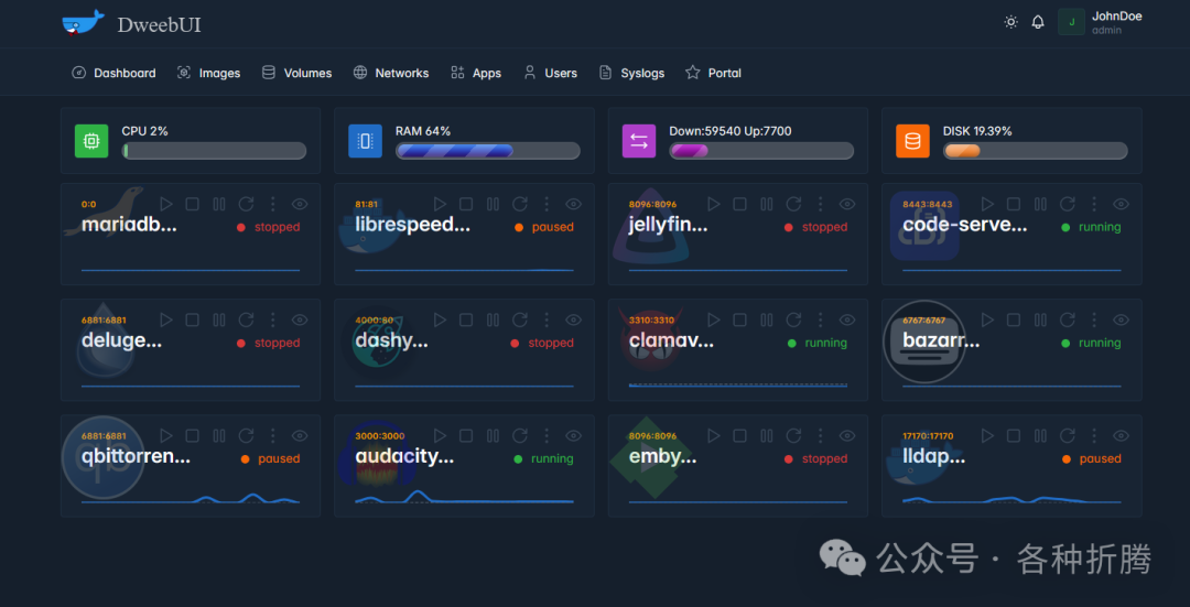 DweebUI 是一个用于管理 Docker 的 Web 界面,为您的容器提供零配置仪表板。通过 DweebUI,用户可以轻松查看容器的状态,管理容器生命周期,并执行常见的 Docker 操作,如启动、停止和重启容器。