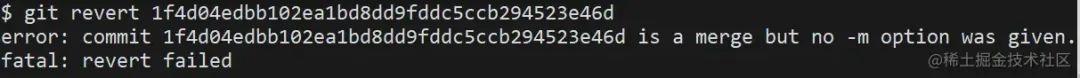 使用刚刚同样的 revert 方法,会发现命令行报错了。