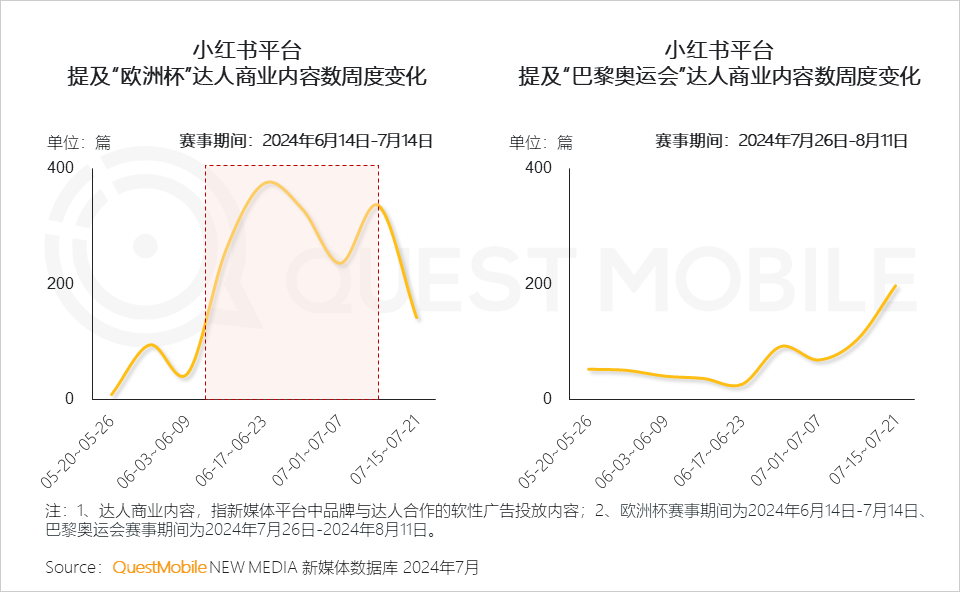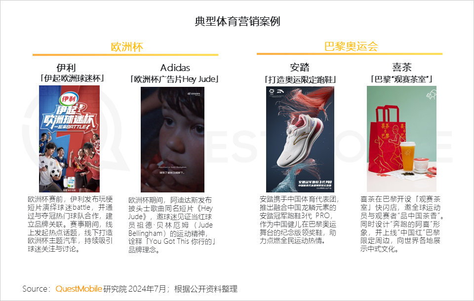 Ⅱ. 热点事件 - 体育营销:针对全民热点赛事,品牌竞相展示,通过差异化的营销策略,从不同角度吸引消费者眼球例如,伊利跳出品牌资源竞争,从人群洞察角度切入欧洲杯「球迷合作伙伴」品牌定位;喜茶设计巴黎奥运会专属形象——“奔跑的阿喜”,亮相巴黎大街小巷。Ⅲ. 热点事件 - 体育营销:品牌软广营销也借力大型体育赛事热度欧洲杯赛事期间,品牌提及欧洲杯的达人商业内容投放数量明显上涨,而巴黎奥运会开幕式前,相关达人商业投放内容正在起量中。Ⅳ. 把握社会情绪 - 慢人节:洞察用户“慢生活”需求,深化品牌与“慢人”之间的联结2024年6月,小红书在云南大理开启「小红书 IP 年度体验大会」,现场搭建了一座「慢人部落」,打造慢人音乐节、慢人燃野营、慢人不赶集、慢人心灵工坊等一系列活动,让更多品牌关注「慢生活」背后用户的真实需求。Ⅴ. 把握社会情绪 - 音乐节营销:越来越多品牌也瞄准音乐节场景,通过自创或借势音乐节 IP 实现与年轻人的双向奔赴Ⅵ. 前沿技术营销 - AI营销:AIGC逐渐从话题热点,成为广告创意的点睛之笔;同时,短剧也开始探索“AI共创”的高效创作时代2024年上半年